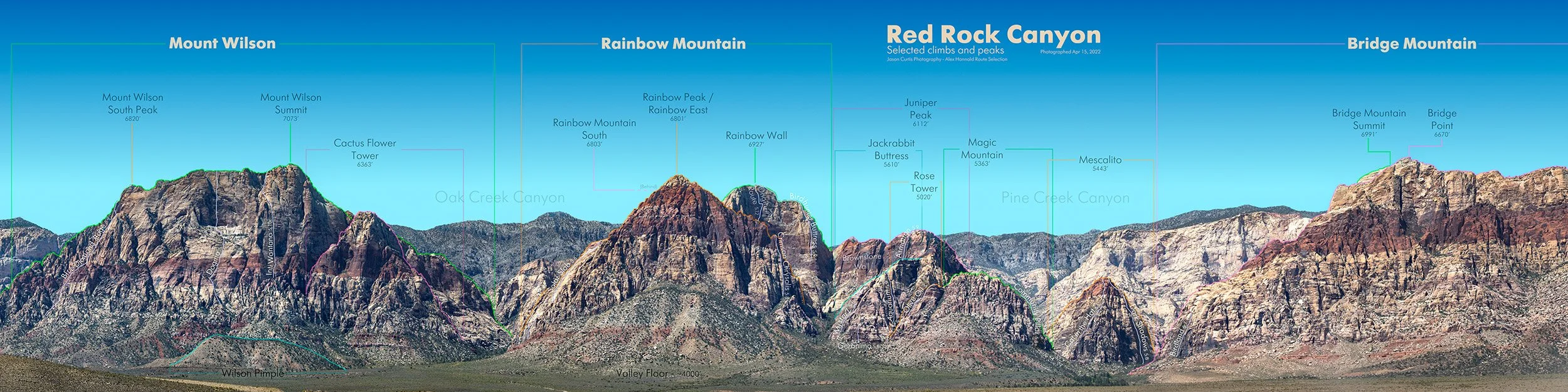 Red Rock Canyon Panorama with routes - Alex Honnold Collab